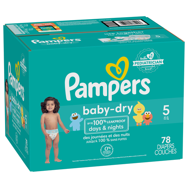 Pampers Baby Dry Size 5 Diapers 27 Lbs Super Pack 78 Ct Box Giant